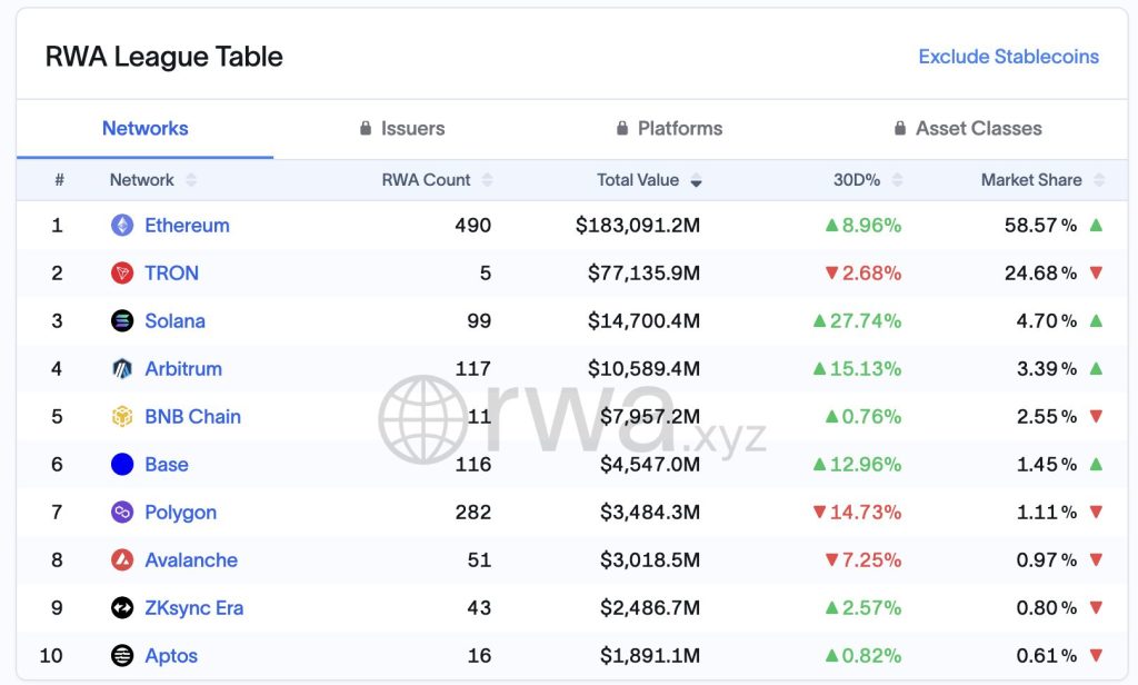 The network already ranks third in total value locked for real-world assets, with $14.7 billion in stablecoins and tokenized assets – double that of BNB Chain, though still behind Ethereum’s $183 billion.